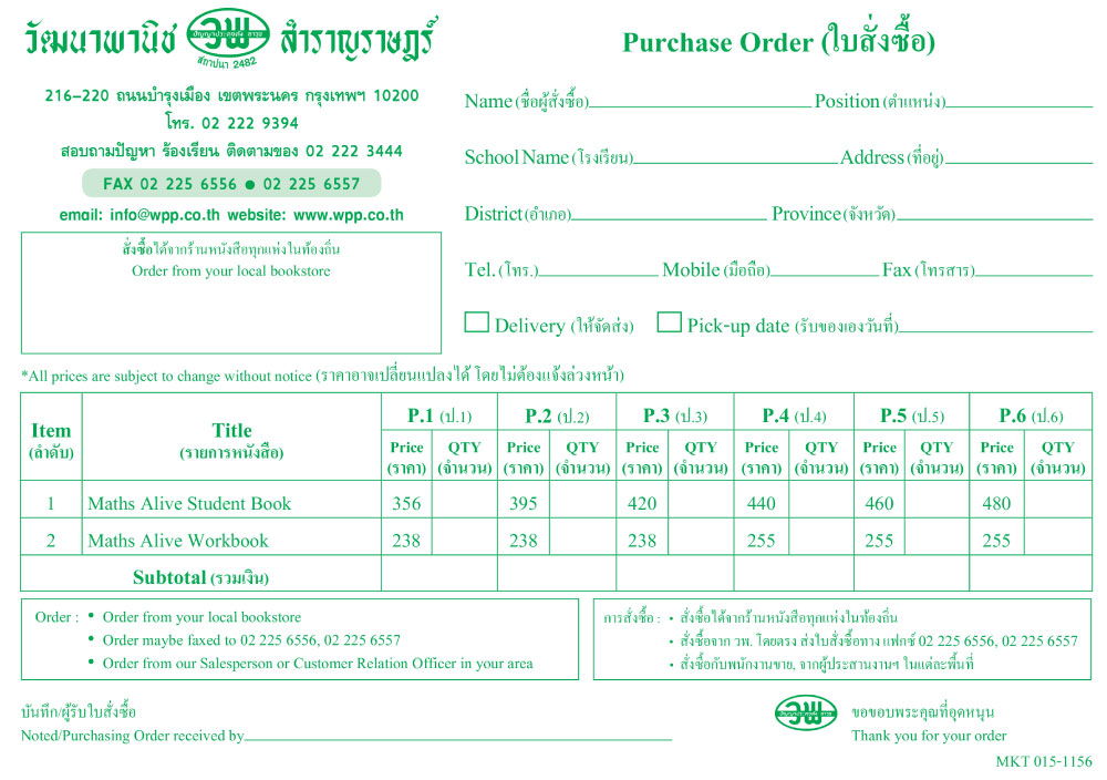 ดาวน์โหลดใบสั่งซื้อ Math Alive